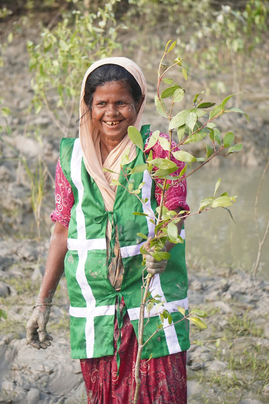 This isn't just tree planting. It's women taking direct action to protect their communities from cyclones, storm surges, and coastal erosion. It's climate resilience built by those who understand the threats most intimately because they live them daily. The images tell a powerful story: women in traditional dress, working together in coastal mudflats, carefully planting young mangrove saplings that will grow into protective barriers. Their labor today becomes tomorrow's shield against nature's fury and rising seas